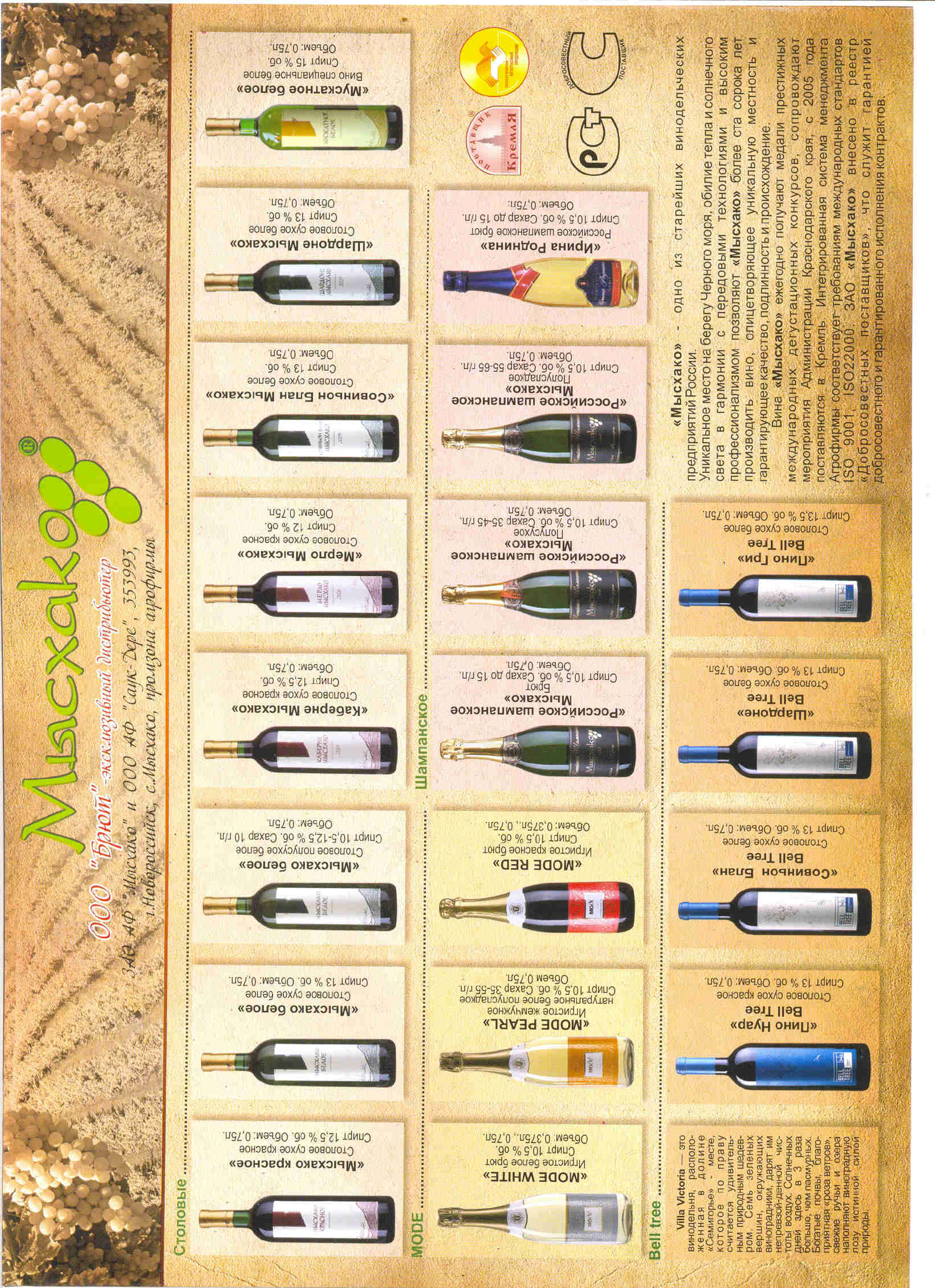 | Вина "Мысхако" Презентер Мысхако столовые |
