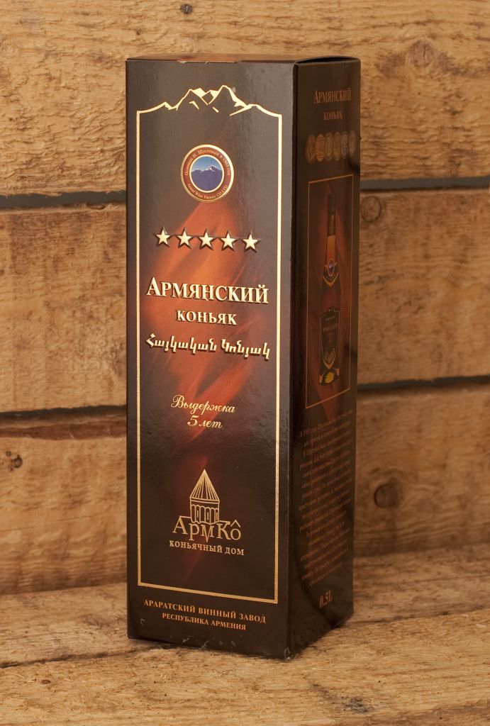 | Армянский коньяк ООО «Коньячный дом «АРМКО» предлагает высококачественный коньяк, производства «Араратского винного завода». Завод, основанный купцом Шустовым в 1903 году, славится производством различных сортов вин, коньячных спиртов и коньяка. При изготовлении коньяка используются лишь высококачественные и наилучшие сорта винограда, такие как кахет, мсхали, харджи, выращенные на собственных плодородных виноградных плантациях Араратской долины и предгорий горы Арарат. Коньяк хранится в дубовых бочках при температуре +15 С с соблюдением технологий, имеющих вековые традиции.